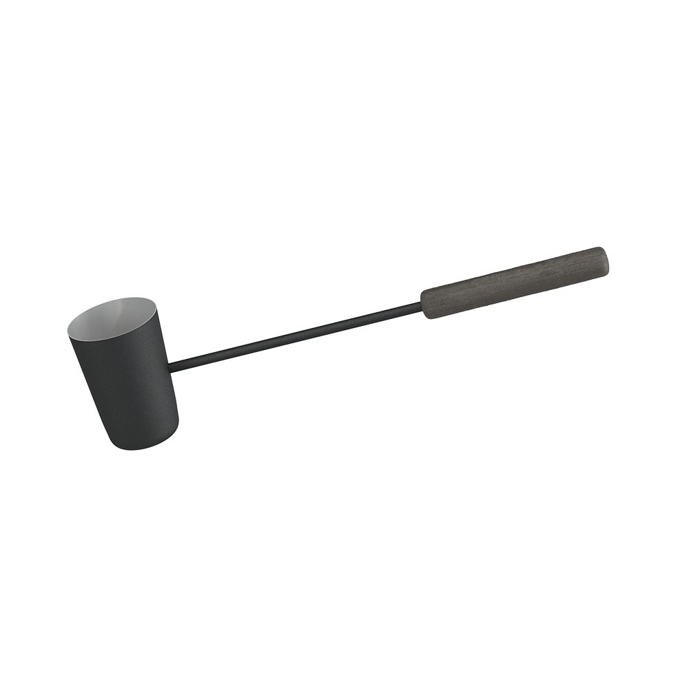Предназначен для подачи воды в закрытую или на открытую каменки банных печей, с целью получения различных видов пара. Изготовлен из нержавеющей стали толщиной 0,8 миллиметра. Объем черпака 450 мл. Длинная деревянная ручка защищает парящихся от воздействия высоких температур и позволяет оперировать черпаком на значительном расстоянии от печи и каменки. Для предохранения от механических повреждений черпак окрашен порошковой эмалью чёрного цвета.
