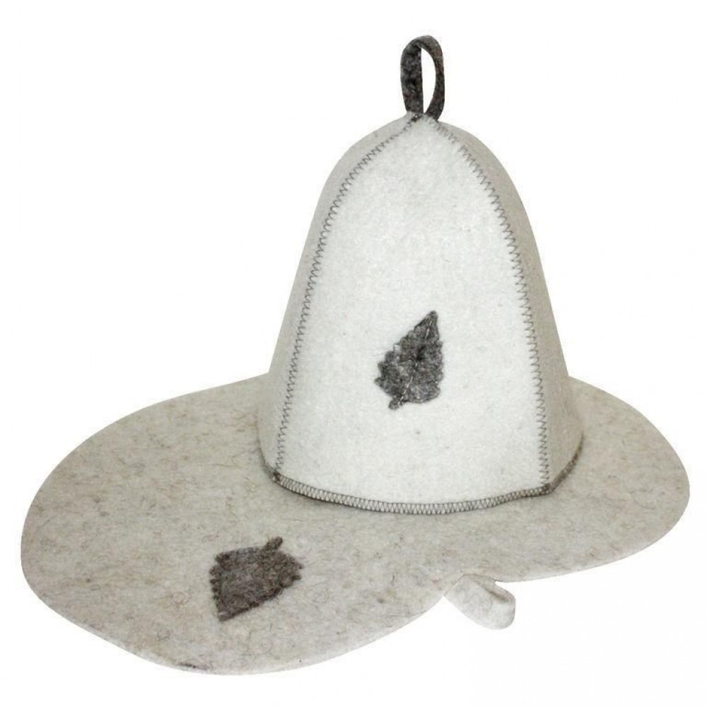 Комплект банный (шапка, коврик), войлок белый арт. Б1601