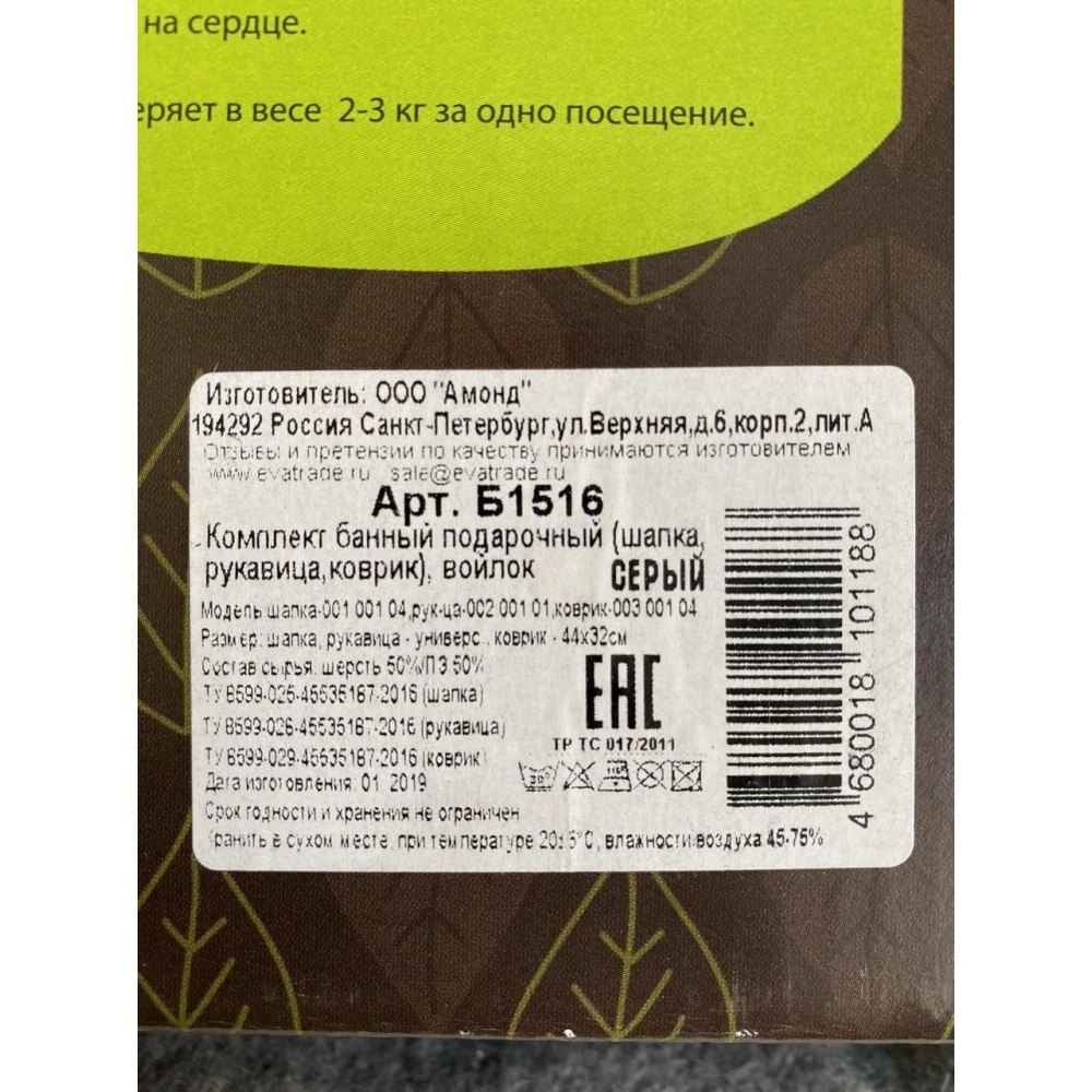 Комплект банный подарочный (шапка, рукавица, коврик), войлок (серый) арт. Б1516