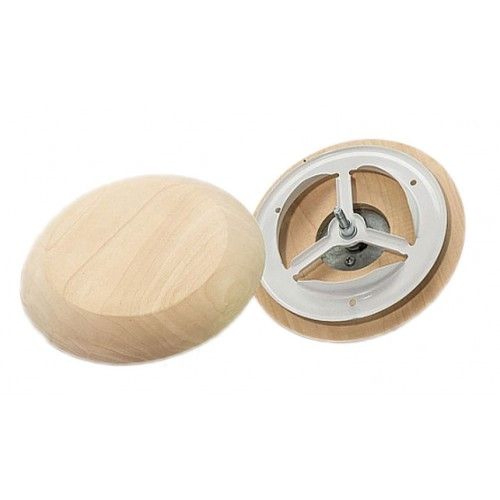 Вентиляционный клапан для бани. Металлическое основание фиксируется в стене парной, клапан открывается путем откручивания и закрывается закручиванием. Установочный диаметр клапана 125 мм.