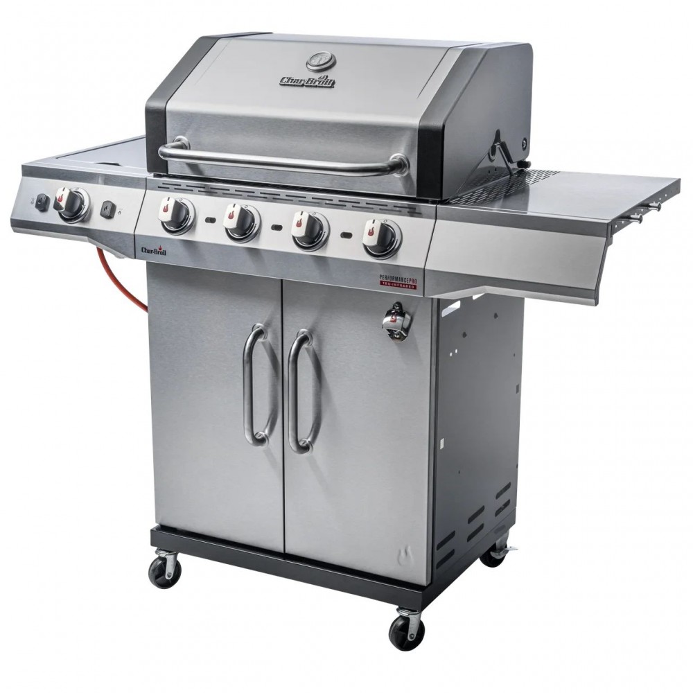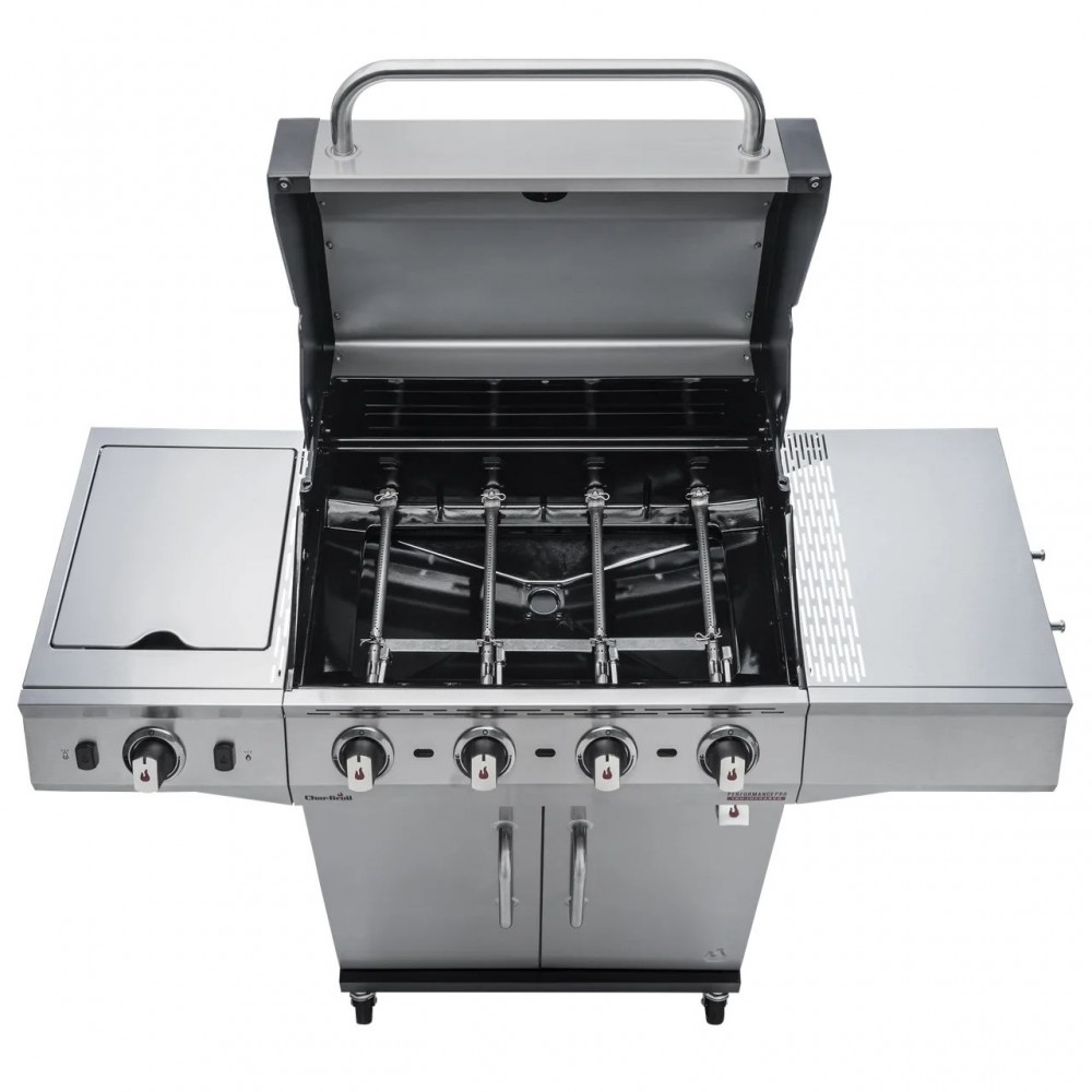 Новейший газовый гриль Performance PRO™ оснащается запатентованной инфракрасной пластиной TRU Infrared™, которая обеспечивает равномерный жар по всей решетке и предохраняет от вспышек капающего жира в котле. Эта сбалансированная модель среднего размера с четырьмя основными и дополнительной боковой горелками прекрасно подойдет для любой компании.