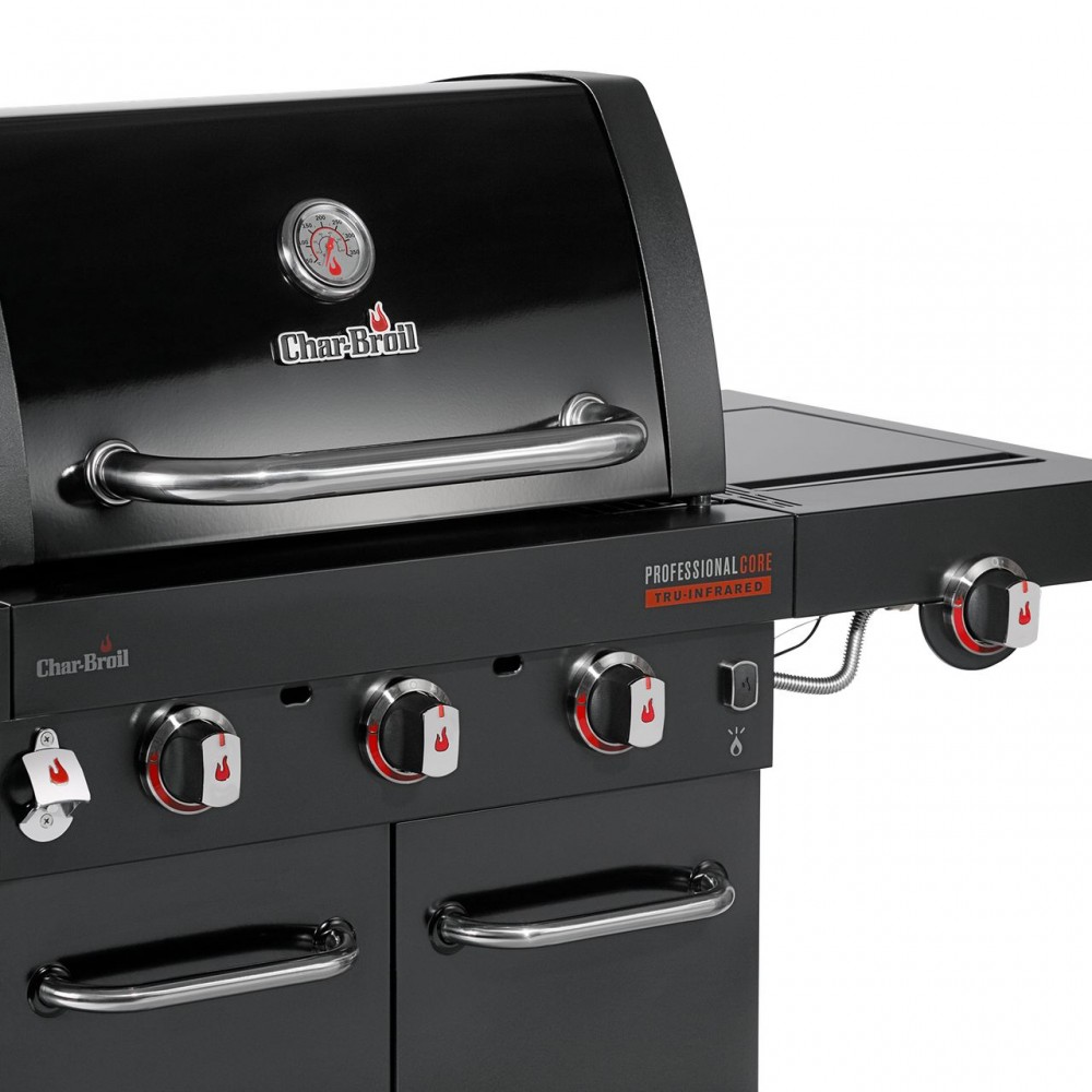 Новейшие газовые грили Char-Broil серии Professional™ третьего поколения, являются нашими самыми популярными моделями в США, Европе и по всему миру. Газовые грили Professional™ оснащаются запатентованной инфракрасной пластиной TRU Infrared™, которая обеспечивает равномерный жар по всей решетке и предохраняет от вспышек капающего жира в котле. Эта просторная модель с четырьмя основными и дополнительной боковой горелками прекрасно подойдет даже для самой большой компании.