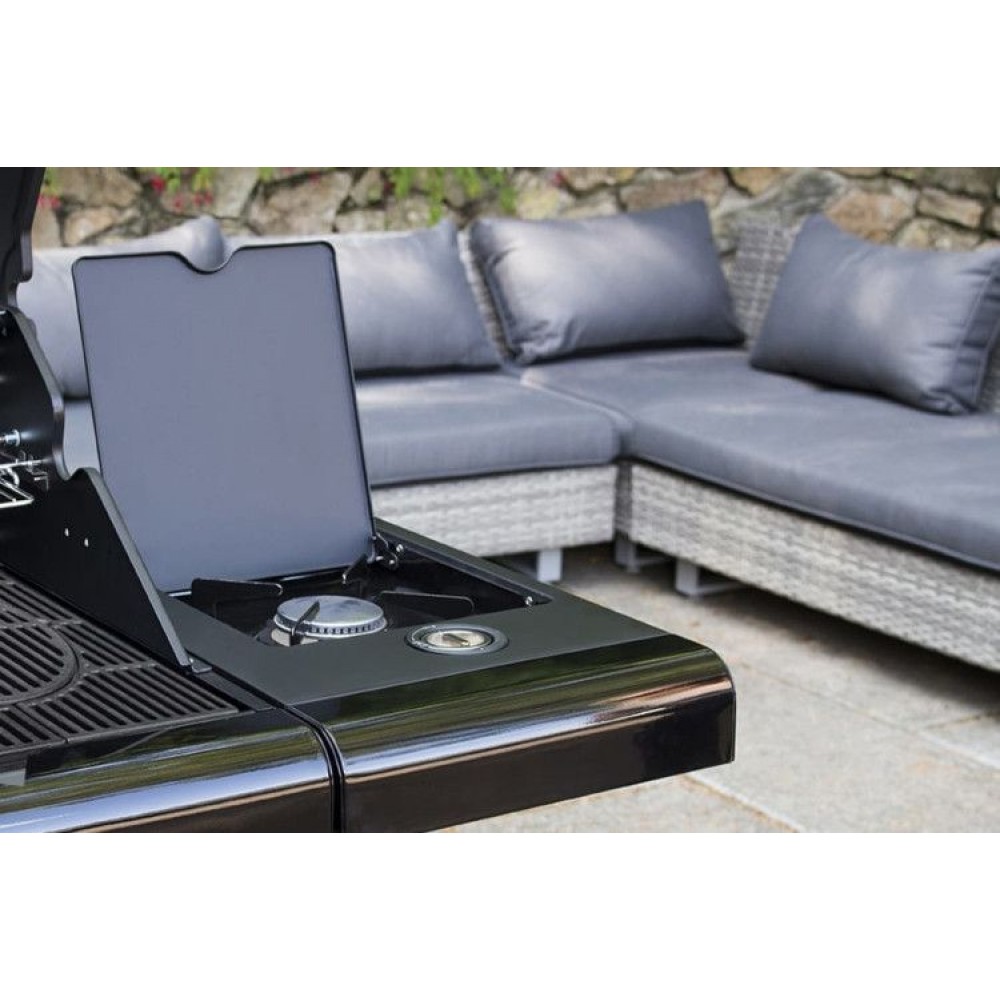 - Зажигание: Электронное зажигание (основные горелки) и пьезозажигание (боковая горелка)
