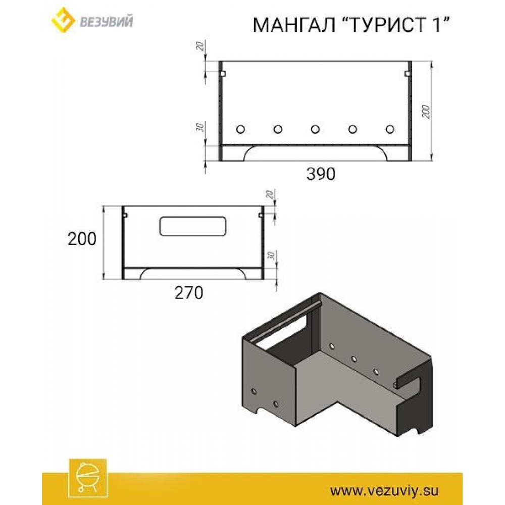- Вес, кг подставка: 3кг; мангал: 5,3 кг