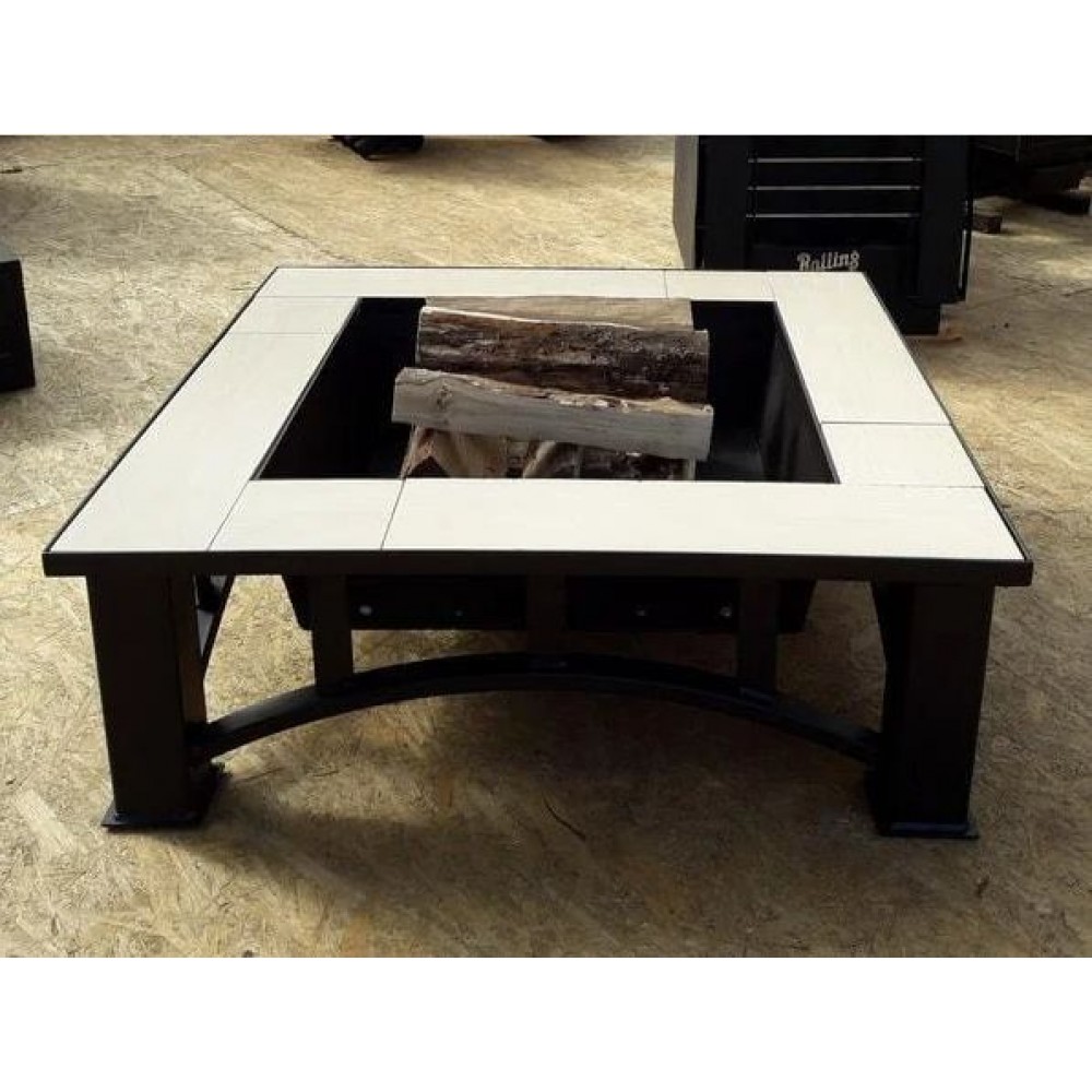 Очаг для костра выполнен из стали, покрыт жаростойкой эмалью и отдекорирован по периметру плиткой. Все соединительные швы конструкции усиленны металическим уголком. Это позволяет избежать температурной деформации изделия. Благодаря изящному и стильному внешнему виду очаг является отличным украшением любого приусадебного участка. Покрытие из термостойкой эмали позволяет долго сохранять опрятный внешний вид и не позволяет мангалу ржаветь.
