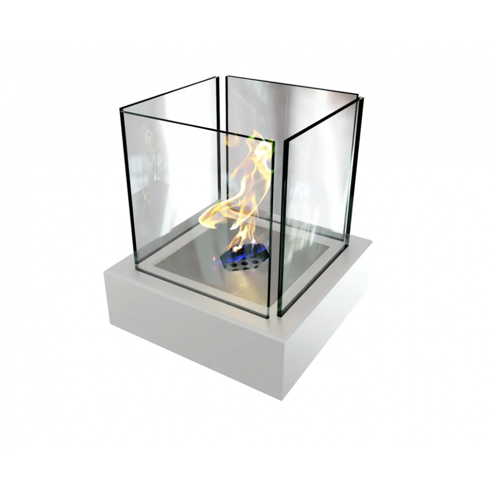 Основание мини-очага выполнено из стали и покрыто матовой порошковой краской. Материал топки – нержавеющая сталь с красивой сатиновой шлифовкой. По периметру живое пламя ограждает огнеупорное стекло, которому не страшны высокие температуры. Все материалы также устойчивы к влаге, потому настольный камин можно использовать на улице. Завтрак на веранде и долгие вечерние посиделки в беседке станут еще приятнее в такой компании.