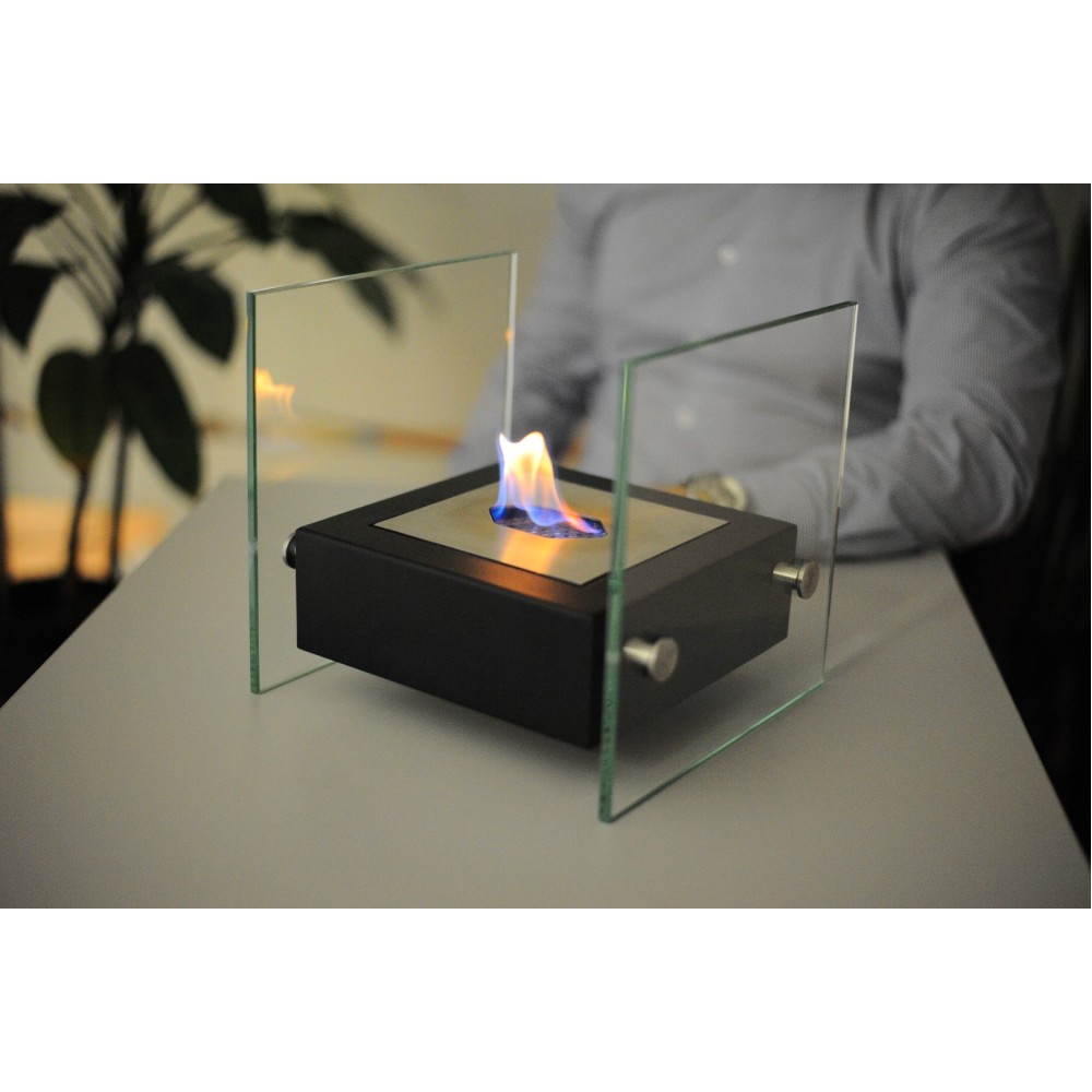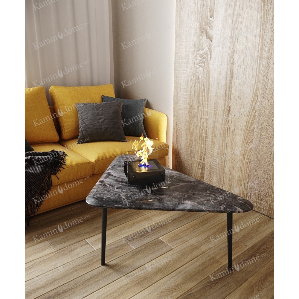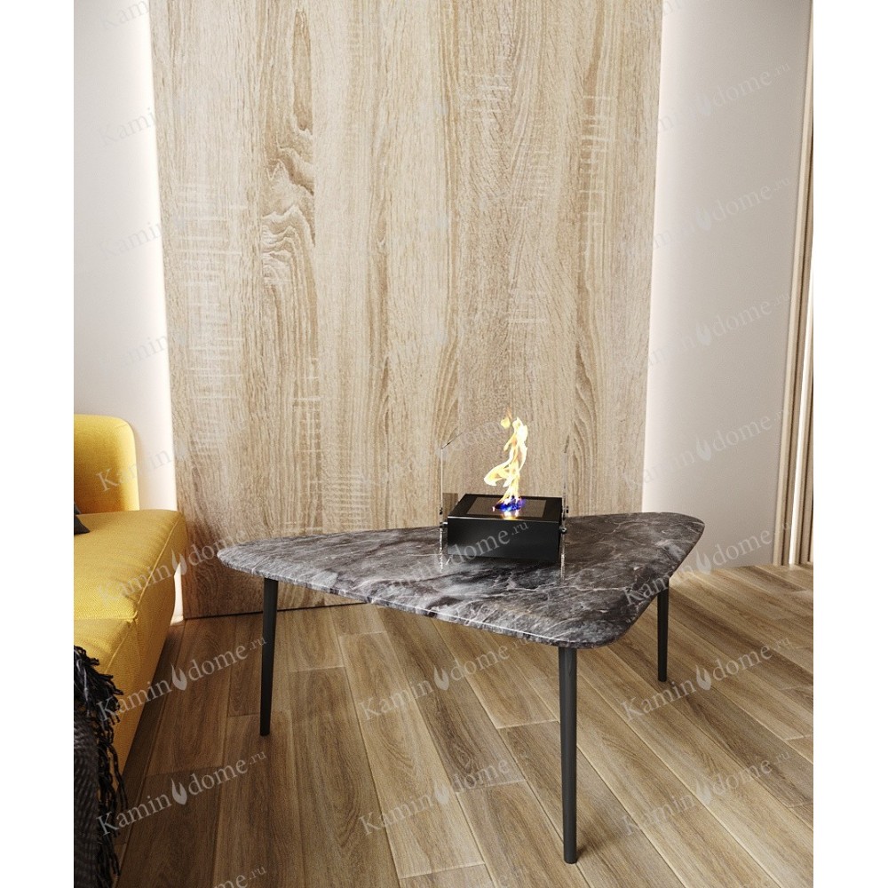 Топка объемом 0,6 л при максимально допустимой заправке обеспечивает 1,5-2 часа непрерывного горения. Устанавливать эту модель можно на любую ровную поверхность, даже на синтетическую ткань. Биокамин опирается на стеклянные стенки, но тепло от огня стремится вверх, и основание нагревается незначительно.
