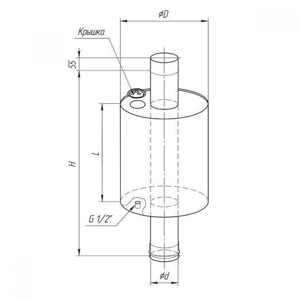 | Бак для горячей воды в баню. Устанавливается у основания дымохода в качестве первого его элемента. Вода нагревается за счет разогрева проходящей через него трубы. | ||