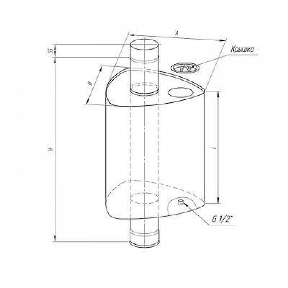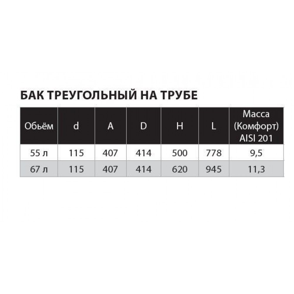 | Бак треугольный на трубе (Ф115). Нержавеющая сталь AISI 201. Толщина стенки трубы - 1,0мм. Толщина стенки бака - 1,0мм. |
