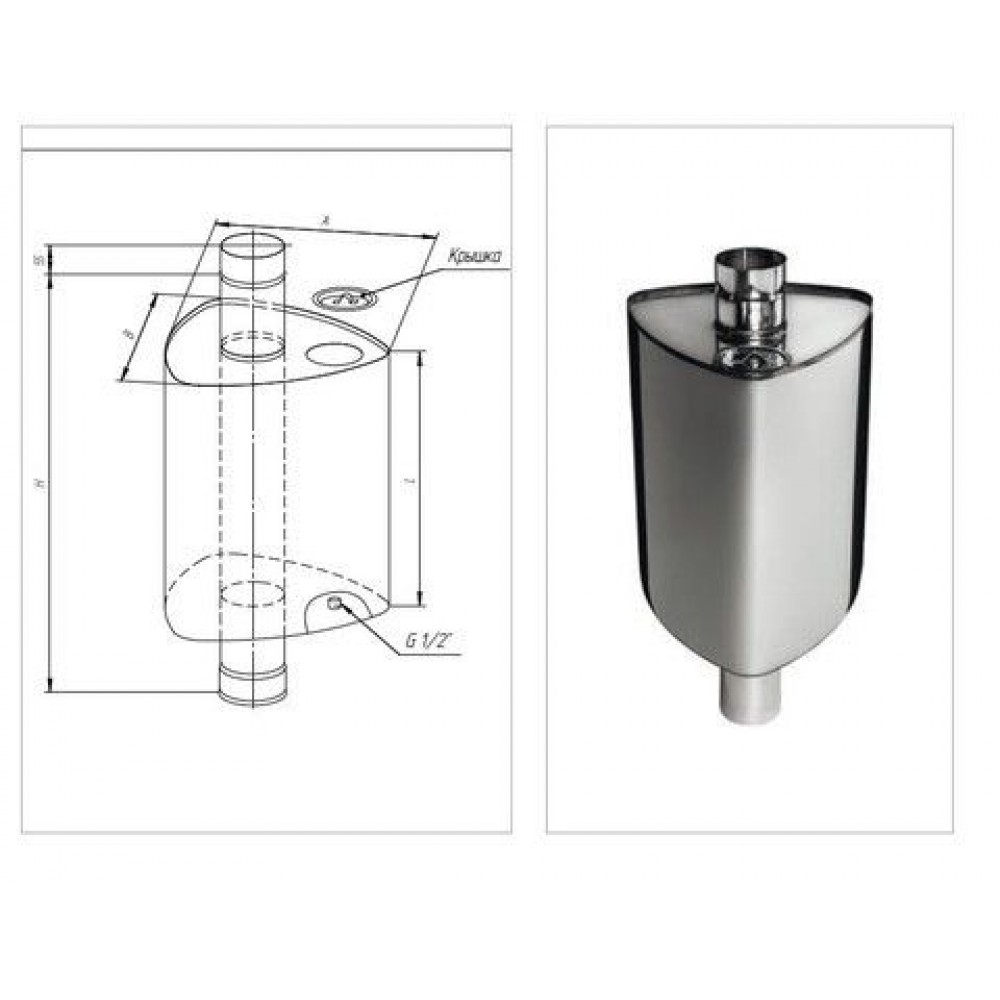 | Бак для горячей воды в баню. Устанавливается у основания дымохода в качестве первого его элемента. Вода нагревается за счет разогрева проходящей через него трубы. | ||||||||||||||