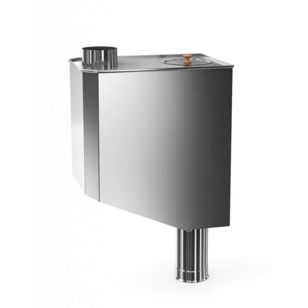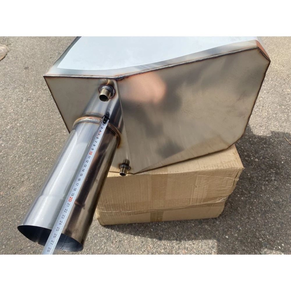Бак самоварного типа со смещенной трубо 70л "Теплодар" - устанавливается на основание дымохода, имеет один штуцер для слива воды и отверстие с крышкой сверху для заполнения.