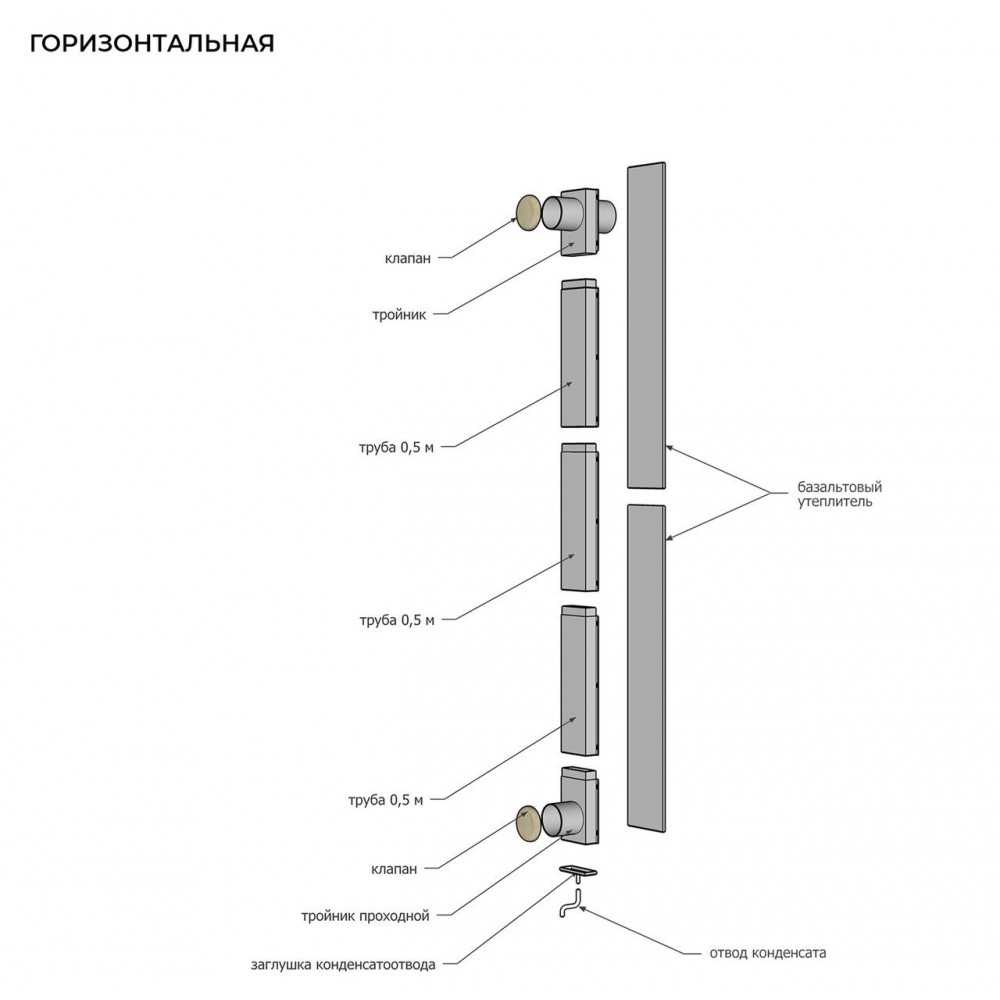 - Дымоходная труба, зонт-К и шибер из нержавеющей стали.