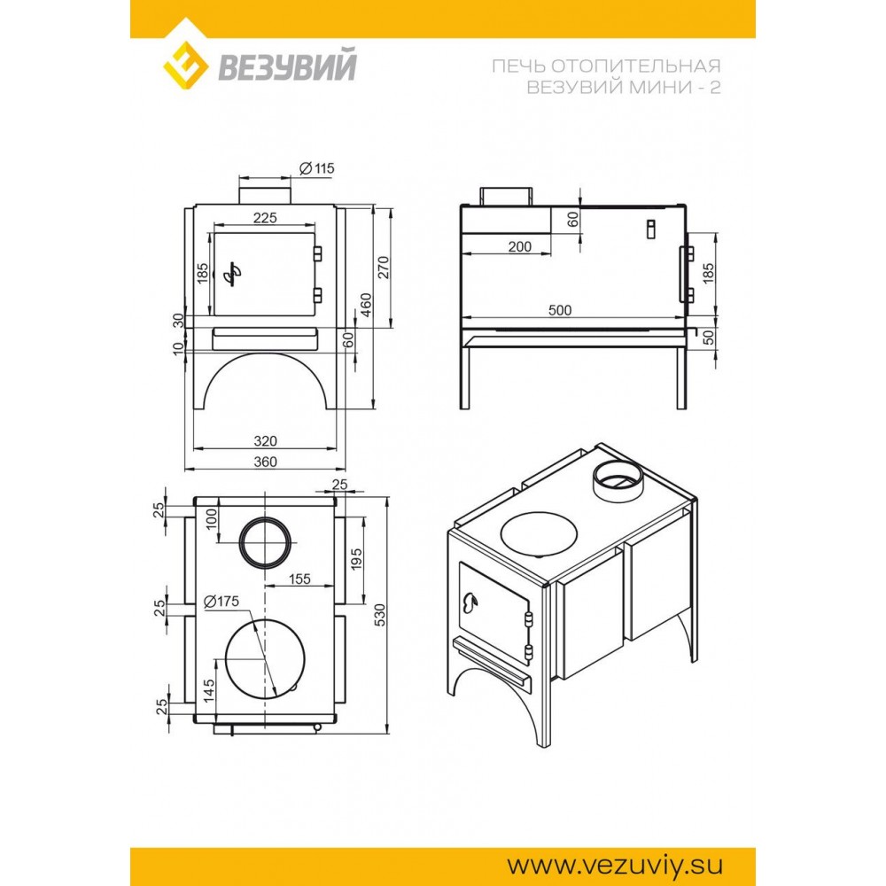 Отопительная печь Везувий "Мини" предназначена для установки в различных хозяйственных помещениях небольшого размера, садовых домиках, жилых помещениях временного проживания. Печь изготовлена из особо прочной котловой стали марки 09Г2С.