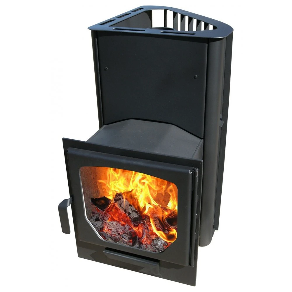 Данная печь предназначена для помещений в которых имеет значение каждый сантиметр площади. Печь аккуратно устанавливается в углу парной и занимает не много места. Печь обладает конвеционно-аккумулирующим действием. Две стороны печи имеют конвекционный кожух, третья же стенка оснащена сеткой для закладки камнем, который впитывает в себя тепло, плавно отдает его в помещение, плюсом создает приятный микроклимат вокруг печи.