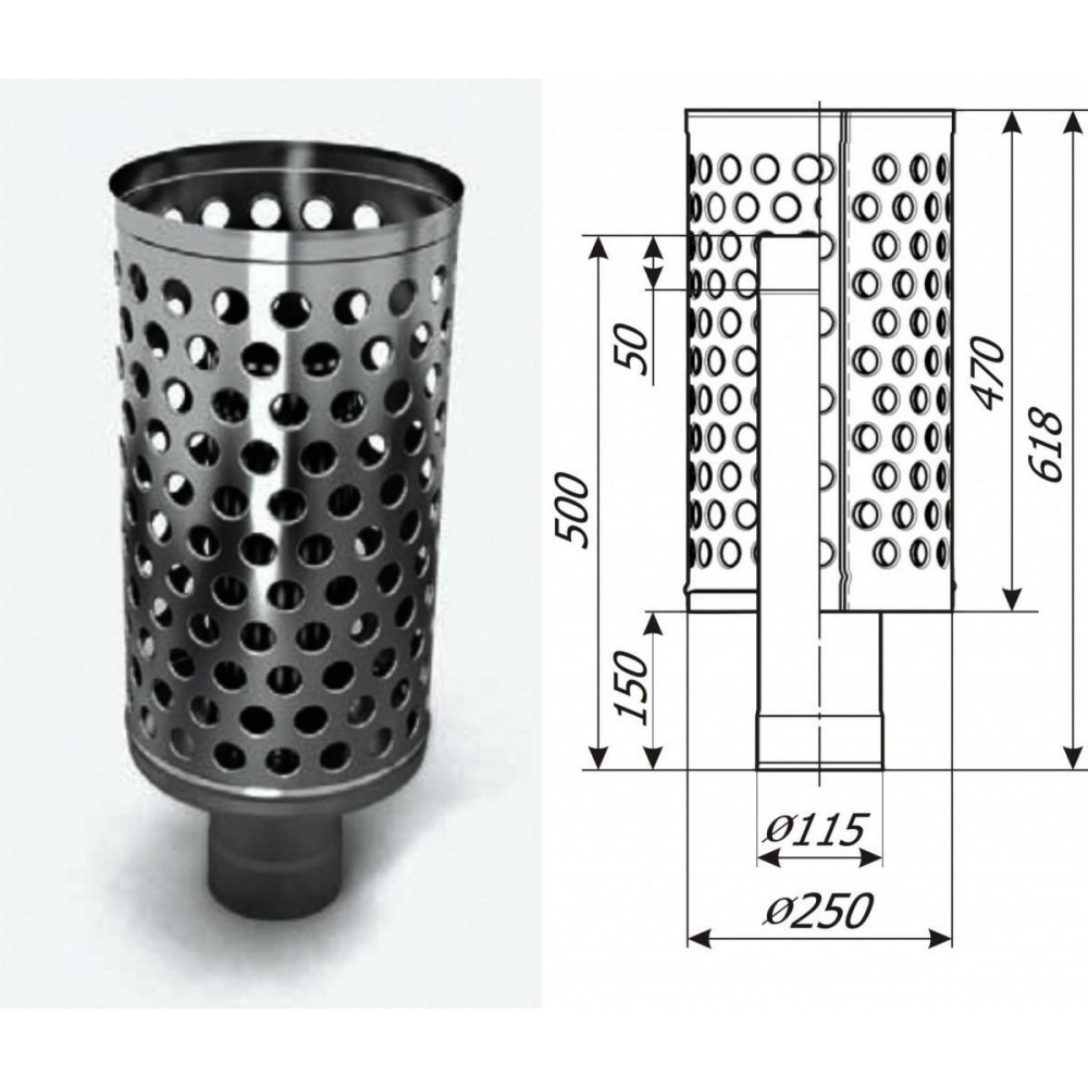 Натрубная каменка-экономайзер «Дизель» - это металлическая корзина, закрепленная на модуле дымохода, в которую закладываются камни между ее наружной обечайкой и дымовой трубой. Она предназначена для аккумулирования тепла от дымовых газов и для экранирования жесткого инфракрасного излучения от стенок горячей трубы.