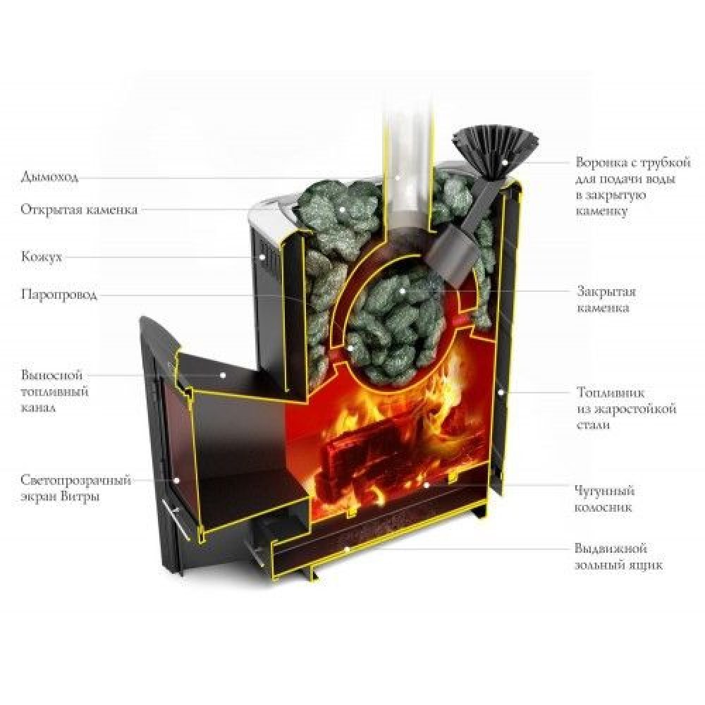 Печь TMF Гейзер Супер Inox Витра ЗК Антрацит: