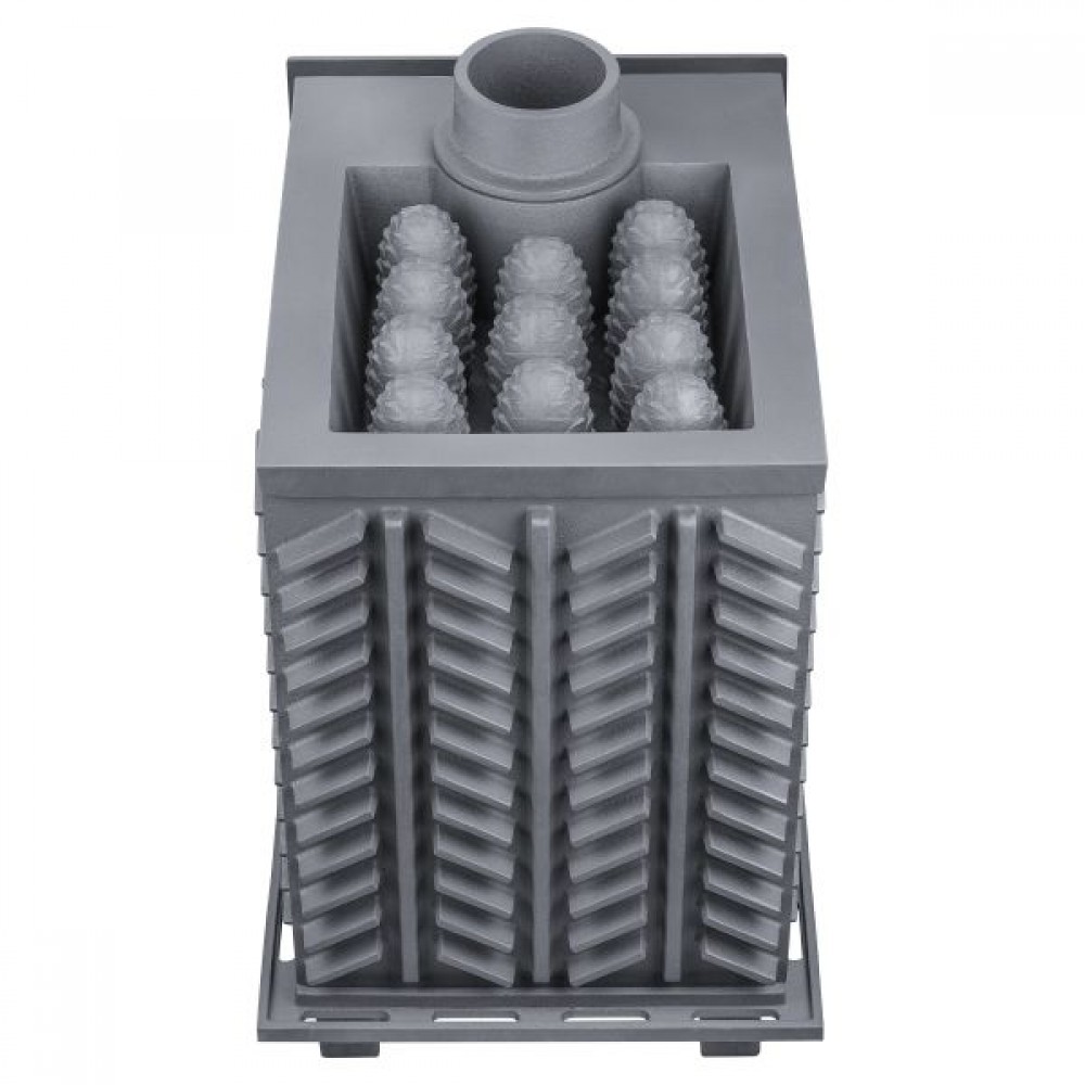 Пирамидальные шипы, расположенные внутри топки на боковых стенках способствуют эффективному горению дров и увеличивают площадь теплопередачи на 80%, что позволяет печи более динамично войти в режим.