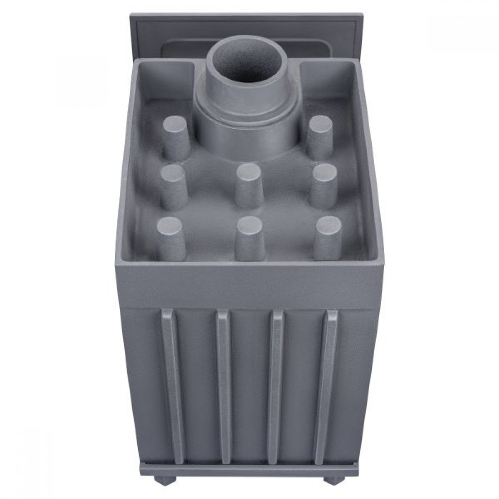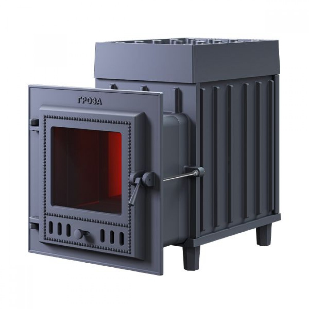 Печь Гроза 18 (М) из чугуна создаст подходящий климат для вашей бани. Чугунные банные печи ТМ «Гроза» — это современные печи, рассчитанные на малые и средние размеры парных. Печь имеет прочную сборную конструкцию, без резьбовых и сварных соединений, детали выполнены из легированного чугуна. Топка печей «Гроза» состоит из двух камер, разделенных пламегасителем. Радиаторные выступы каменки, направленные вглубь топки, увеличивают площадь контакта огня с каменкой и эффективность теплосъема. Для увеличения площади поверхности нагрева камней каменка снаружи оборудована чугунными шипами, направленными вверх. Между шипами укладываются банные камни или дополнительные чугунные заклады, такие как ядра и чугунные шишки. Сами чугунные шипы также являются частью заряда для лучшего испарения воды.