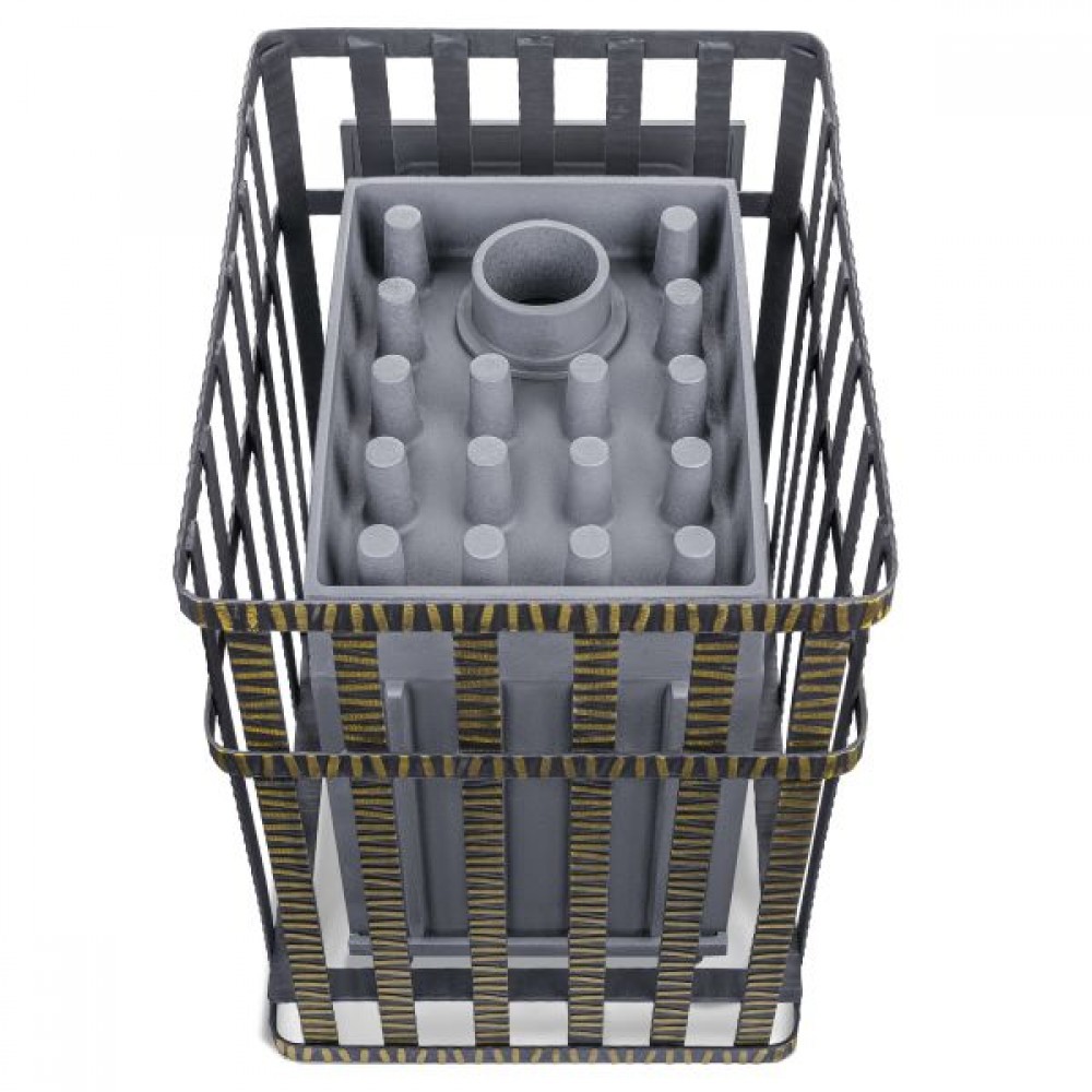 Не имеющая аналогов каменка толщиной 45 мм обеспечивает непревзойденную надежность и высокую теплоемкость, 120 теплосъемных шипов по всей её поверхности, позволяют каменке нагреться за 60 минут до 700 градусов и долгое время удерживать тепло.