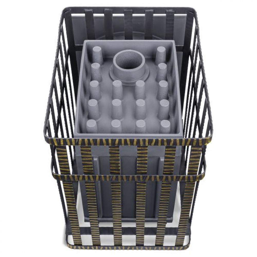 Не имеющая аналогов каменка толщиной 45 мм обеспечивает непревзойденную надежность и высокую теплоемкость, 120 теплосъемных шипов по всей её поверхности, позволяют каменке нагреться за 60 минут до 700 градусов и долгое время удерживать тепло.
