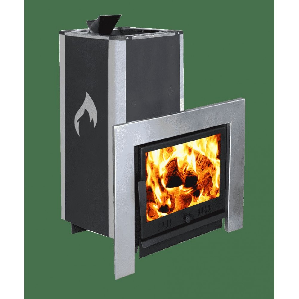Банная печь конвекционного типа, объединившая в себе две каменки - открытую и закрытую. Открытая каменка, как у большинства классических печей, прогревается от газоходных каналов и нагревает камень до температуры 250-300 ⁰С.