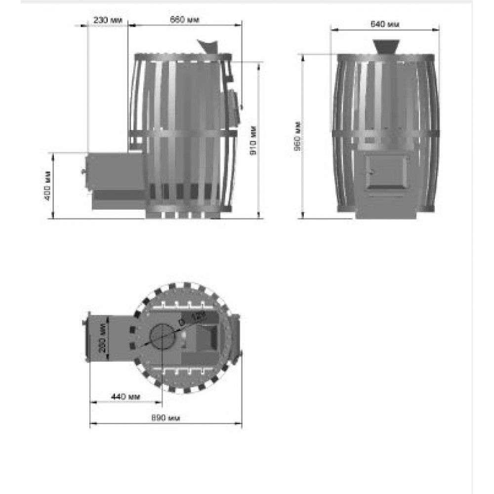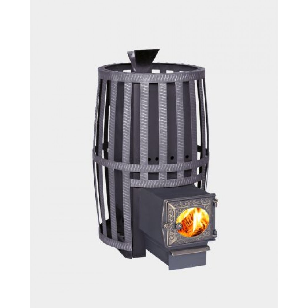Банная печь накопительного типа, объединившая в себе две каменки - открытую и закрытую. Открытая каменка, как у большинства классических печей, прогревается от газоходных каналов и нагревает камень до температуры 250-300С. Закрытая каменка прогревает камень значительно сильнее - до температуры 400-450С. Также закрытая каменка имеет дозатор для равномерной подачи воды по всей длине каменки и лейку с клапаном для удобной подачи воды непосредственно в закрытую каменку. По желанию, поддавать в закрытую каменку можно через дверку, расположенную сзади корпуса печи. Подача воды в закрытую каменку через систему дозатора более эффективна, так как в этом случае происходит более сильный перегрев пара, он проходит через всю каменку и выходит через специальные отверстия, расположенные на противоположной стороне печи. Топка печи изготовлена из стали повышенной прочности марки 09Г2С (ГОСТ 19281-2014) толщиной 6-8 мм, которая значительно увеличивает срок службы печи.