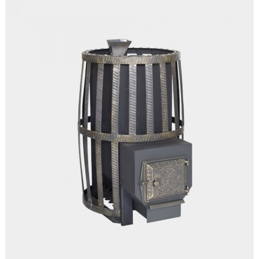 Банная печь накопительного типа, объединившая в себе две каменки - открытую и закрытую. Открытая каменка, как у большинства классических печей, прогревается от газоходных каналов и нагревает камень до температуры 250-300С. Закрытая каменка прогревает камень значительно сильнее - до температуры 400-450С. Также закрытая каменка имеет дозатор для равномерной подачи воды по всей длине каменки и лейку с клапаном для удобной подачи воды непосредственно в закрытую каменку. По желанию, поддавать в закрытую каменку можно через дверку, расположенную сзади корпуса печи. Подача воды в закрытую каменку через систему дозатора более эффективна, так как в этом случае происходит более сильный перегрев пара, он проходит через всю каменку и выходит через специальные отверстия, расположенные на противоположной стороне печи. Топка печи изготовлена из стали повышенной прочности марки 09Г2С (ГОСТ 19281-2014) толщиной 6-8 мм, которая значительно увеличивает срок службы печи.
