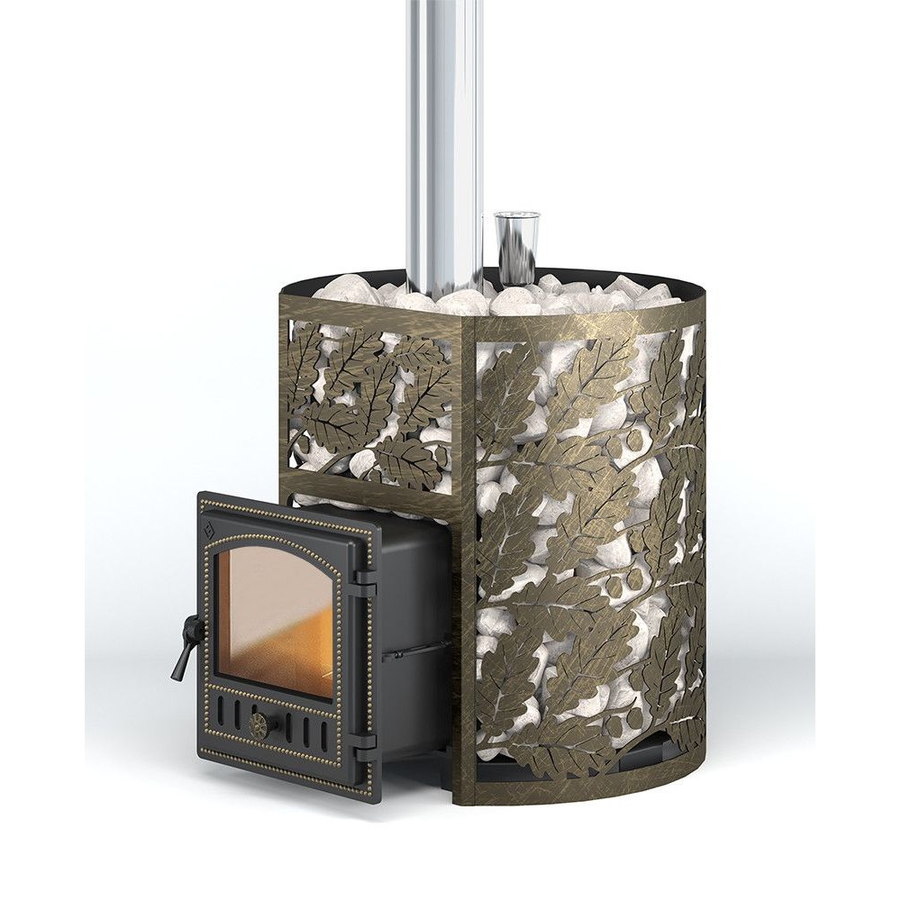 В комплектацию входит: Сборная печь со съемным топочным тоннелем и чугунной дверкой. Цилиндрическая закрытая каменка из нержавеющей стали марки AISI 430, рассчитанная на загрузку 35-40 кг камней мелкой фракции. Система капельной подачи воды на камни закрытой каменки. Канал для подачи воздуха в область вторичного дожига. Массивный чугунный колосник. Зольный ящик, выполненный из прочной стали, позволяющий оперативно проводить уборку печи. Стальной конвекционный кожух для укладывания камней. Термостойкий герметик для сборки печи. Инструкция по монтажу и эксплуатации.