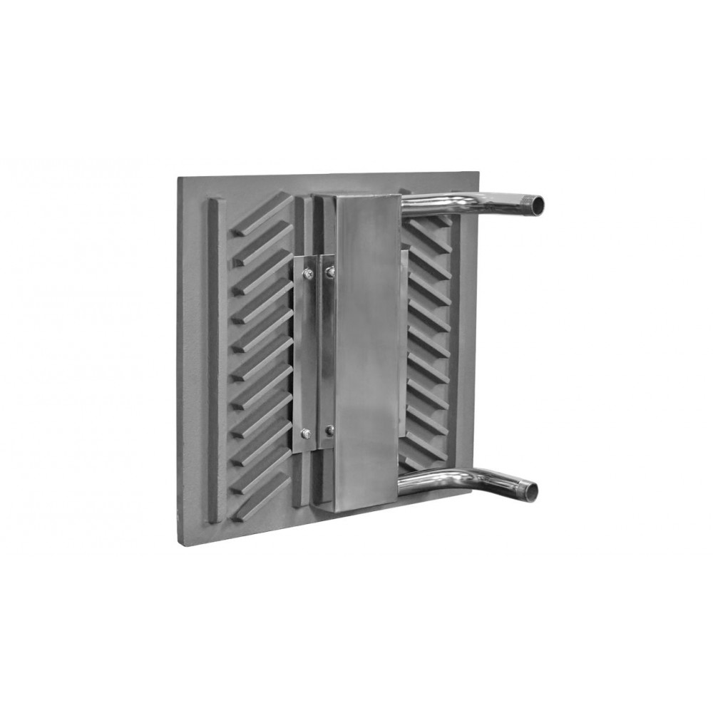 Штуцеры для подключения имеют выход под углом 90 градусов, и при креплении на стенку топки могут располагаться как в передней, так и в тыльной части топки.