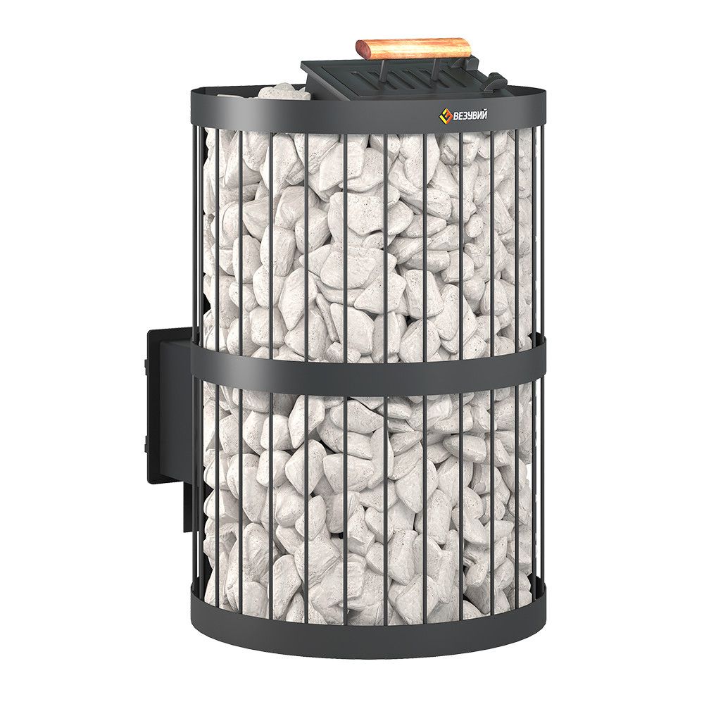 Воздух в зону горения подаётся через поддувало, его количество регулируется зольным ящиком совкового типа. Открытый зольник усиливает горение, закрытый – замедляет его. Чугунный пламегаситель перенаправляет поток горячего воздуха и дымовых газов к задней части топки. Это позволяет снять с печи максимум энергии в единицу времени. Чугунная дверь при нагревании не деформируется, сохраняет свою форму при остывании и предотвращает попадание продуктов горения на пол перед топкой. Печи Везувий СКИФ оснащаются сетками для камней. Сетки могут быть сделаны из металлического прутка или кованой стальной ленты шириной 40 мм. В сетки по всей высоте укладываются камни для бани, обеспечивая большой объём заклада и длительное удержание тепла после прогрева каменки.