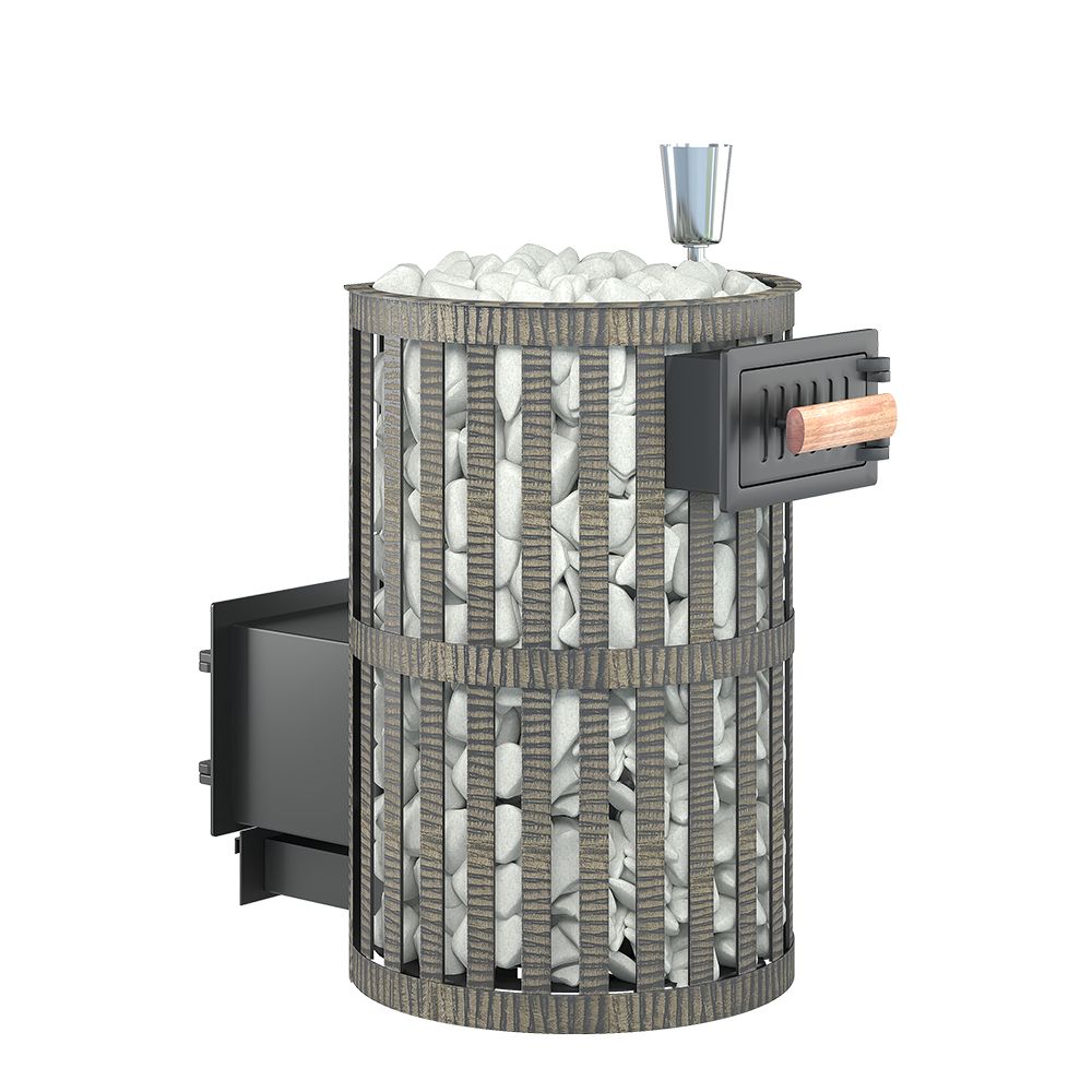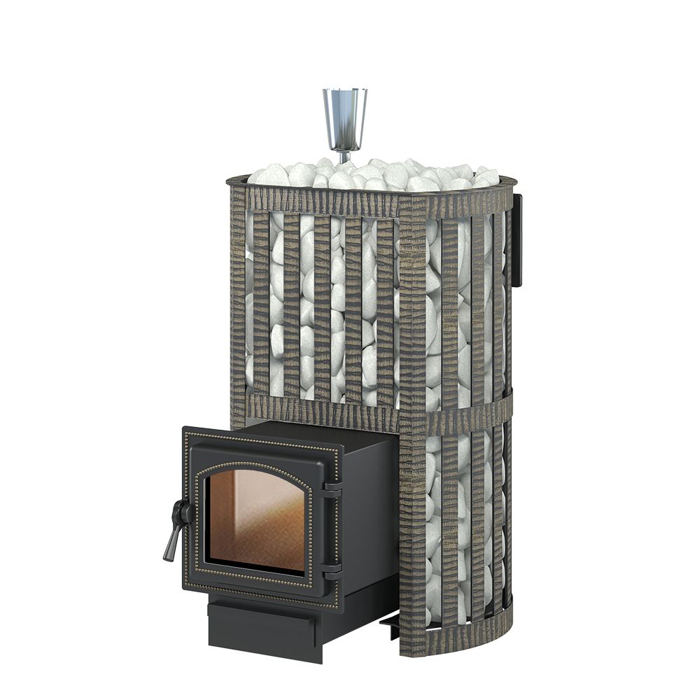 Банная чугунная печь Ураган Ковка 12 (260) укомплектована чугунной герметичной дверцей Везувий 260. Закрытая каменка изготовлена из стали. Конвекционно-вентилируемый кожух "Ковка" изготовлен из металлической текстурированной полосы покрашенной термостойкой краской и покрытая патиной «Бронза».