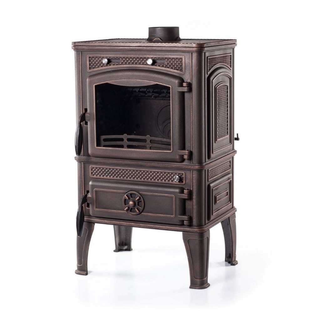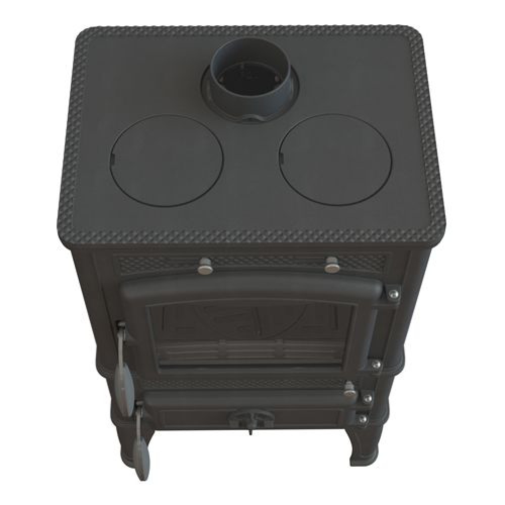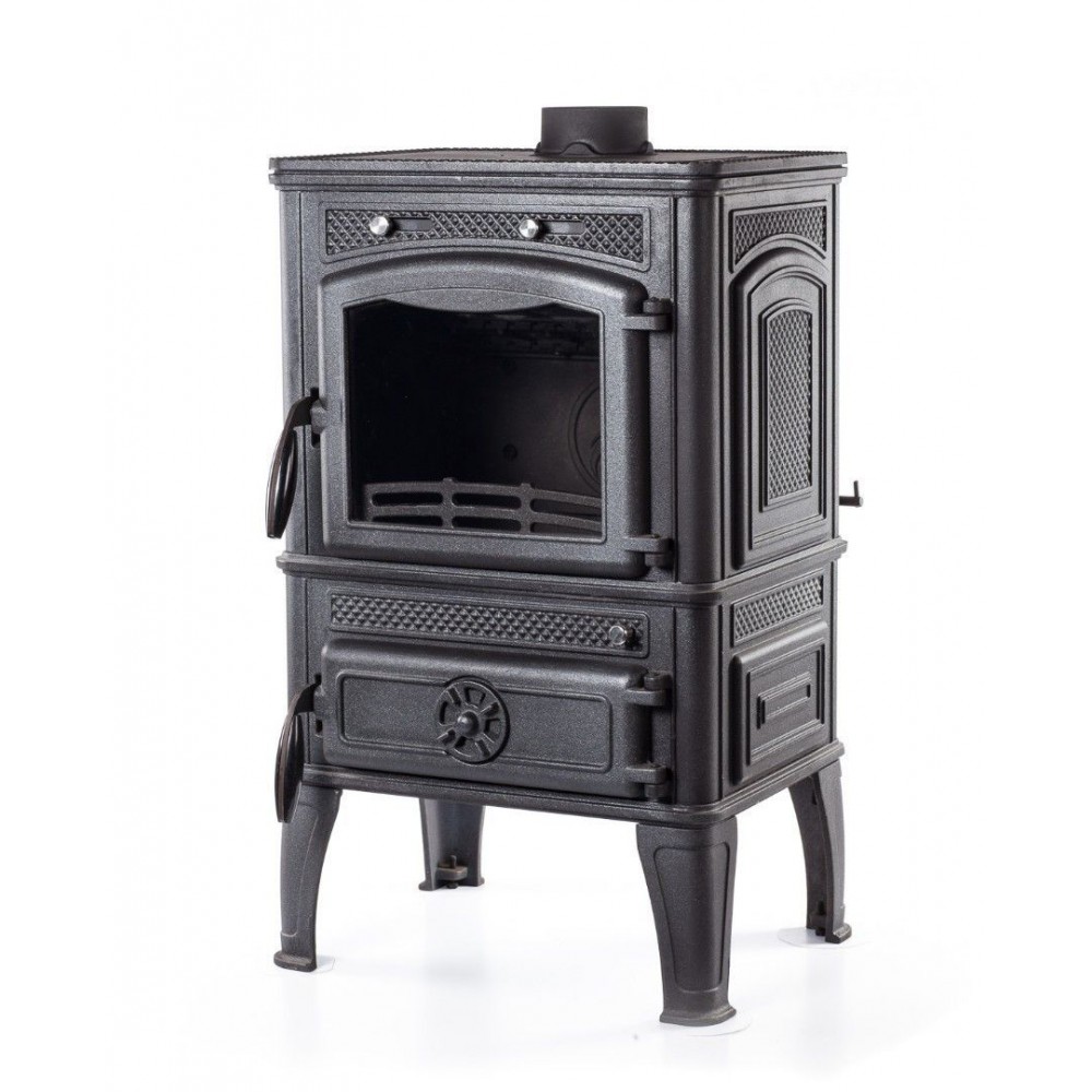 Тепловая мощность печи 12 кВт. КПД 75%. Систем длительного горения, работа в режиме тления до 8 часов. Система регулировки подачи воздуха на обдув стекла. Система сброса золы с колосник. Крышка прочистки на верхней панеле. Загрузка дров фронтальная. Диаметр дымохода 120 мм. Расположение дымохода сверху или сзади. Отделкаантрацит. Размер стекла 324х270х4 mm. Гарантия 5 лет.