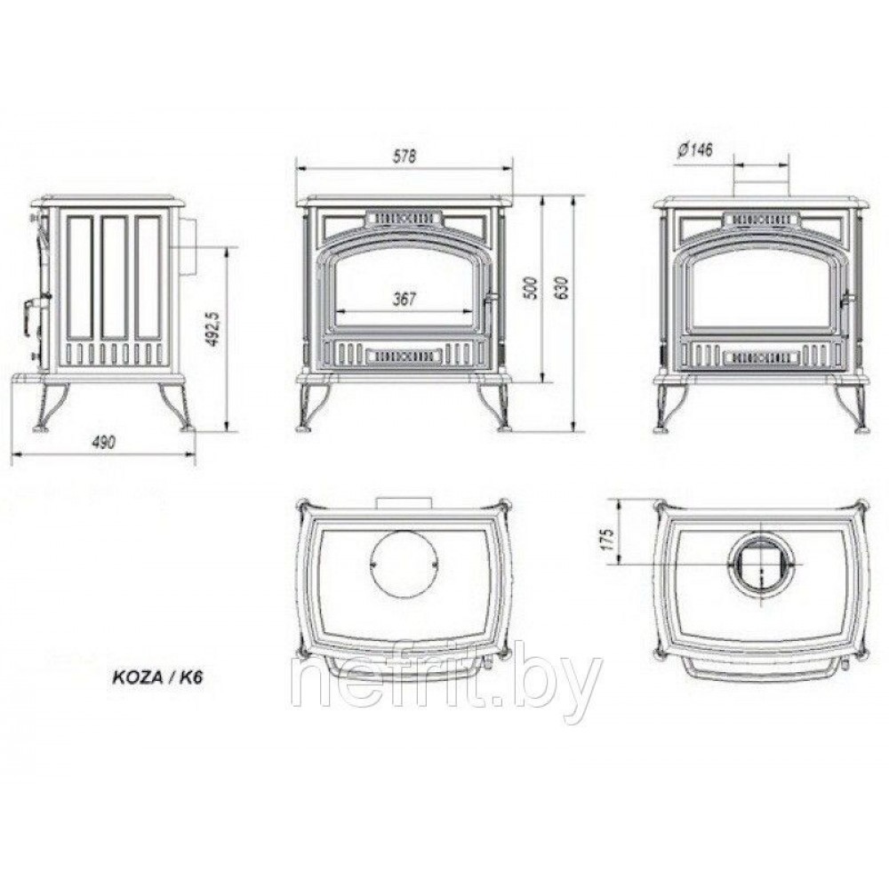 Чугунная печь камин Kratki KOZA K6 с выходом трубы под 130 диаметр или 150!